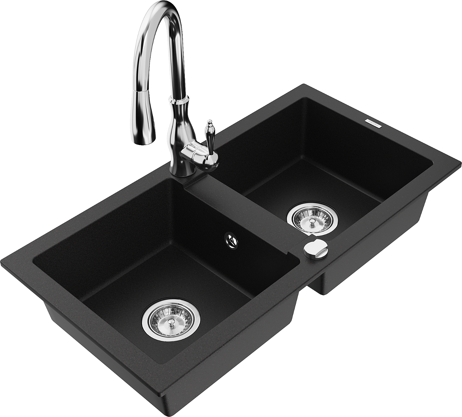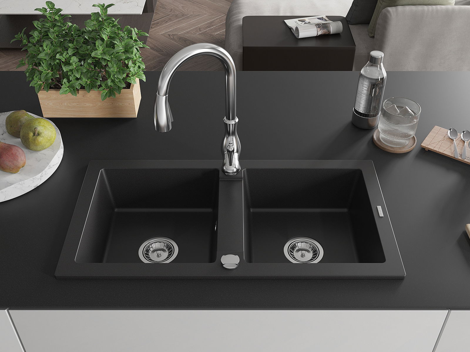 Mexen Mario granieten spoelbak met 2 kamers met keukenmengkraan Savita, zwart - 6504-77-672601-00