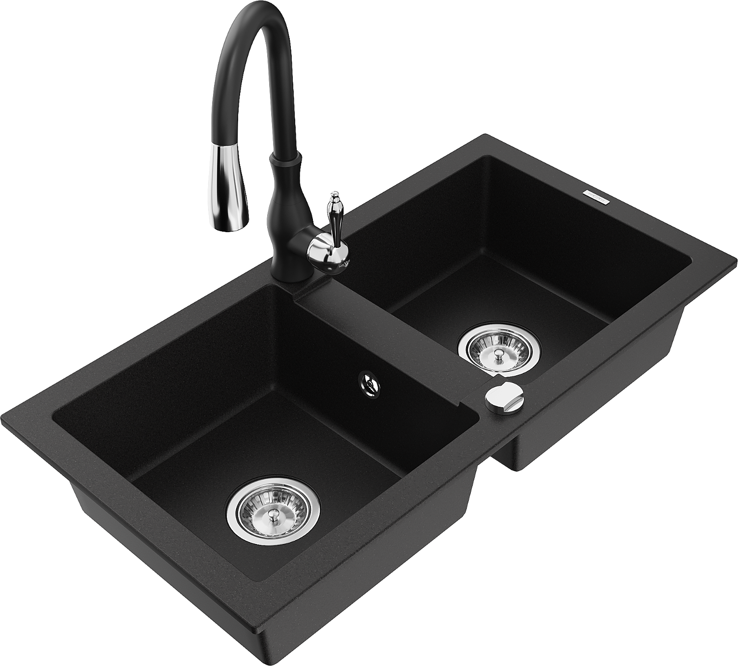 Mexen Mario 2-kamer granieten gootsteen met keukenkraan Savita, zwart - 6504-77-672601-70