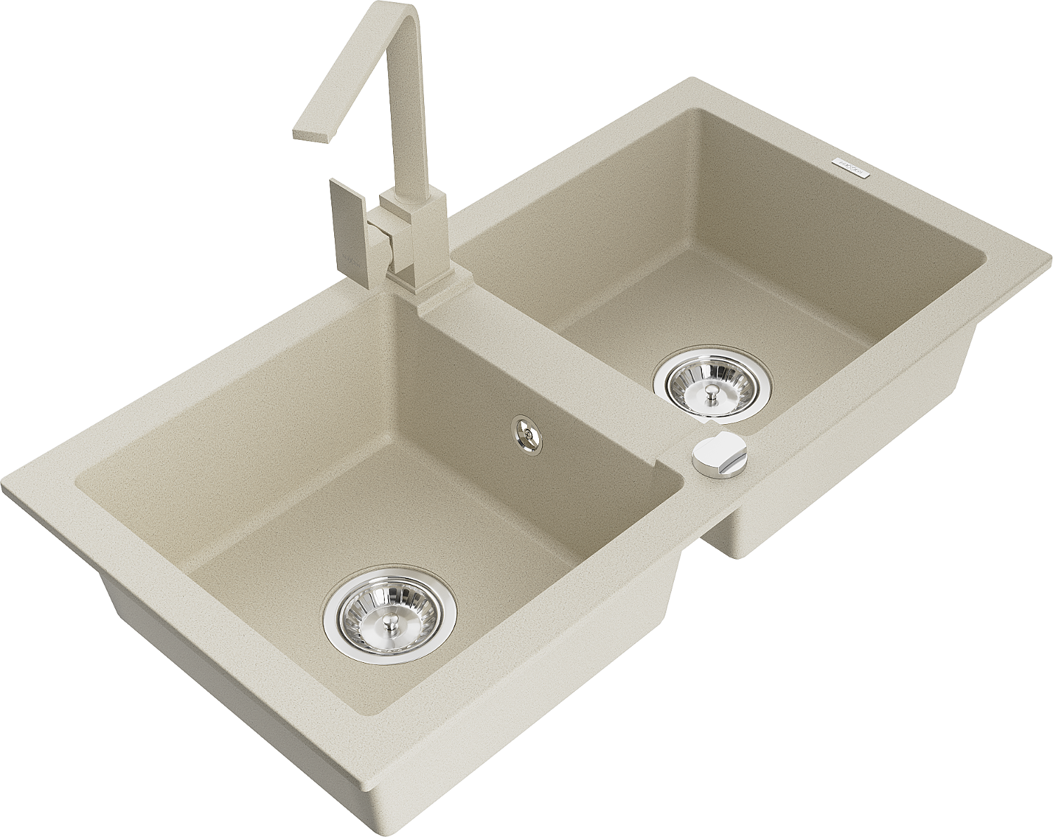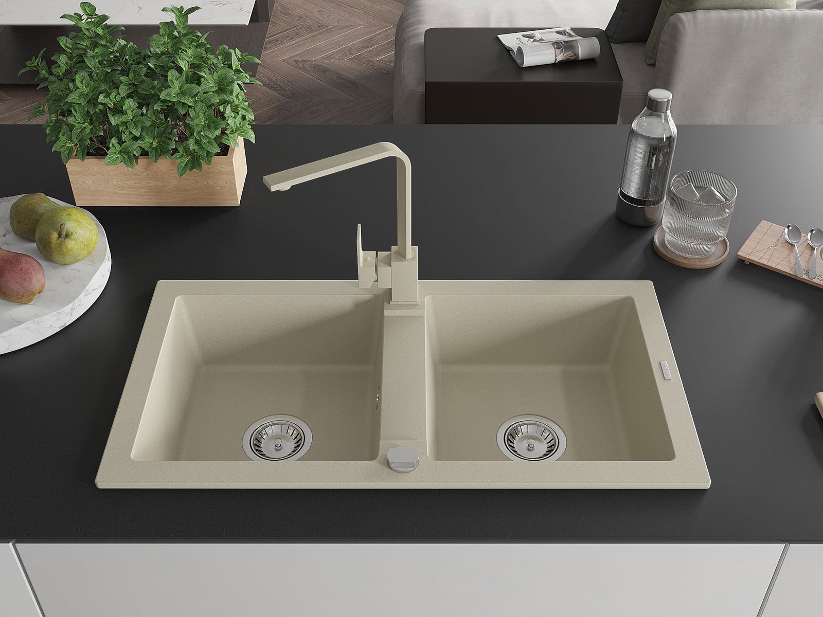 Mexen Mario granieten gootsteen 2-komorige met keukenmengkraan Rita, beige - 6504-69-670300-69