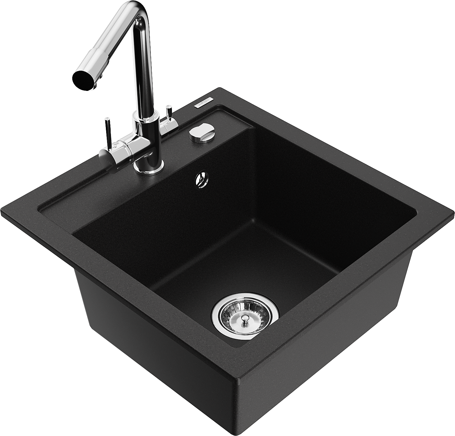 Mexen Vito granieten gootsteen 1-kompartment met keukenkraan Duero, zwart - 6503-77-671600-00