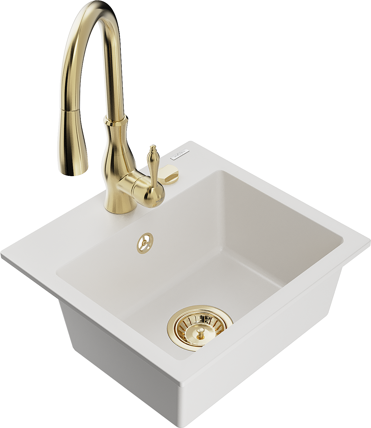 Mexen Milo granieten gootsteen 1-komors met keukenkraan Savita, wit - 6505-20-672601-50