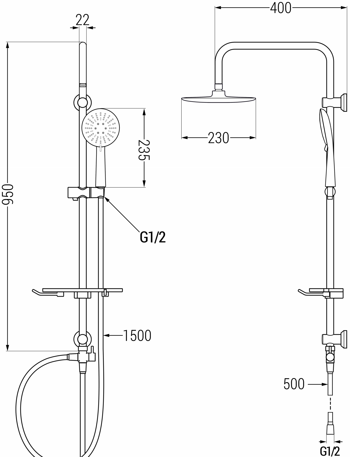 Afstand van de muur: 400 mm