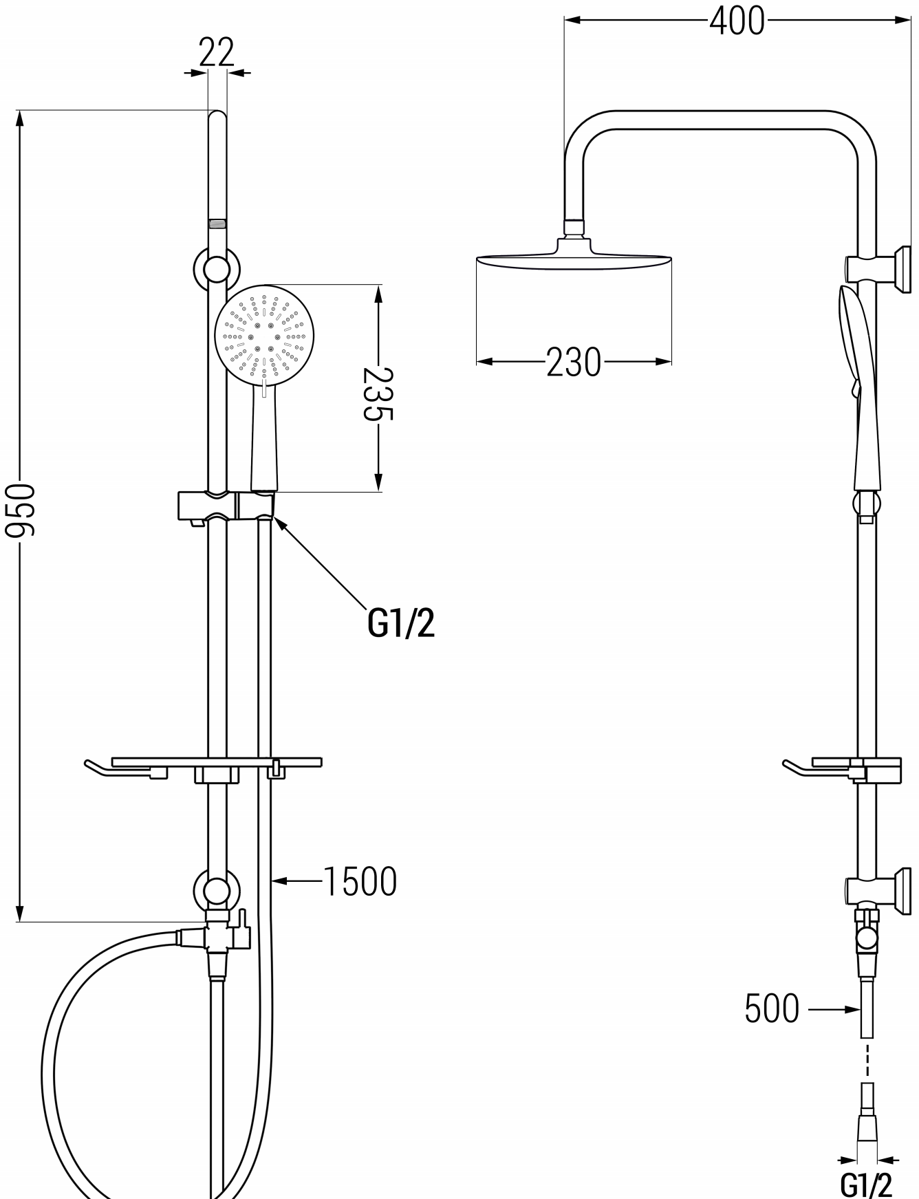 Grootte van de regendouche: ø230 mm