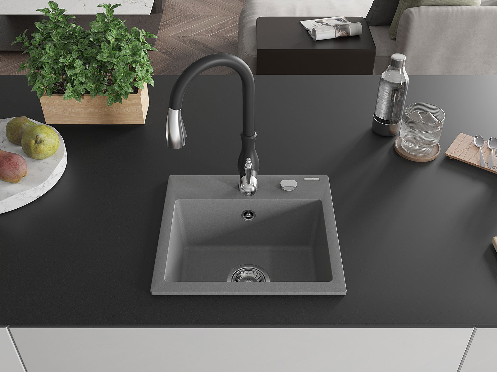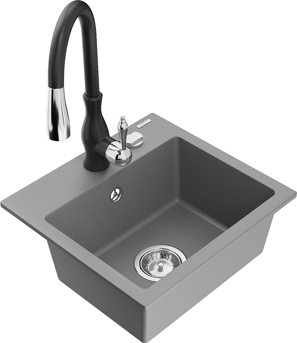Mexen Milo granieten gootsteen 1-komorige met keukenkraan Savita, grijs - 6505-71-672601-70