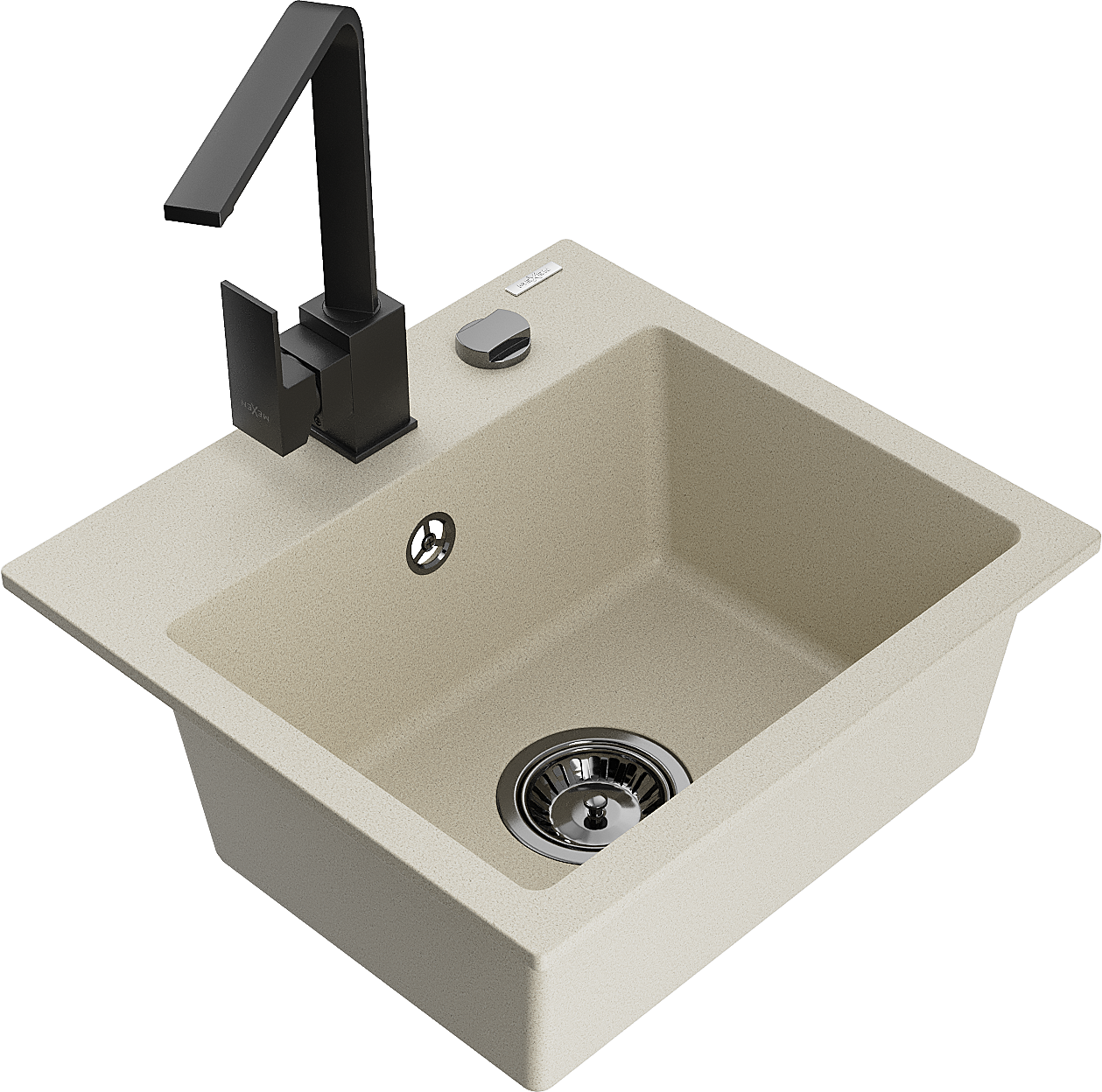 Mexen Milo granieten spoelbak 1-komor met keukenkraan Rita, beige - 6505-69-670300-70