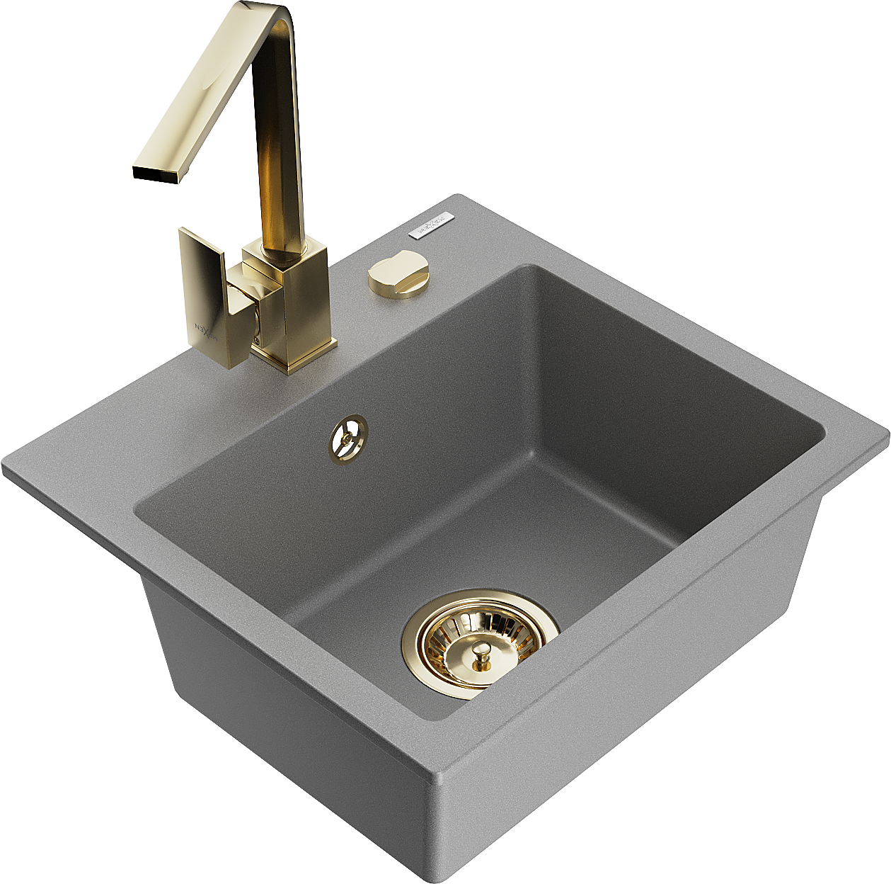Mexen Milo granieten gootsteen met 1 bak en Rita keukenmengkraan, grijs - 6505-71-670300-50