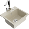 Het oppervlak van de gootsteen is bestand tegen vlekken en verkleuringen, waardoor het gemakkelijk schoon te houden is en zijn kleur behoudt gedurende een lange gebruiksperiode. Een esthetische en praktische aanvulling op elke keuken.