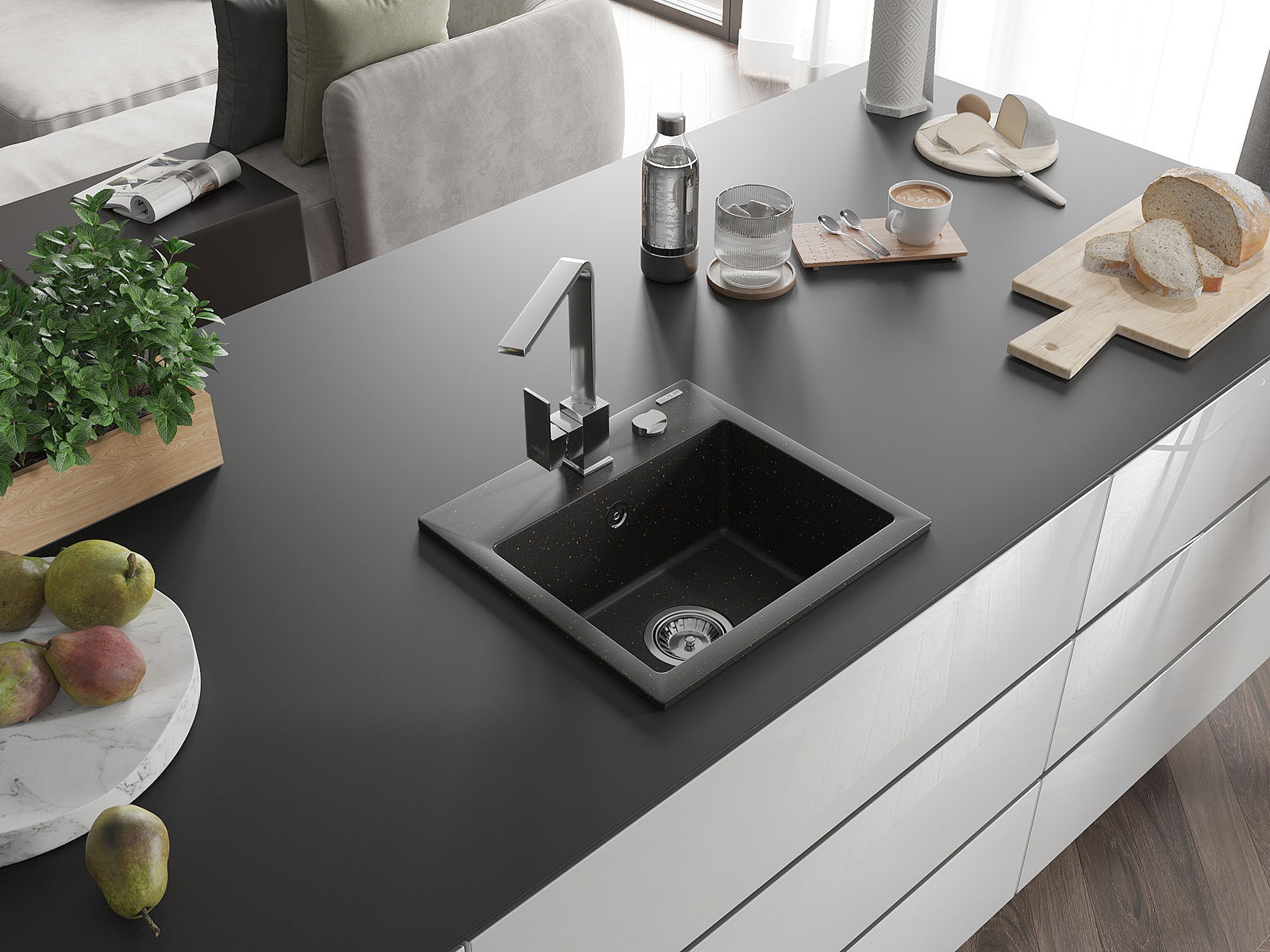 De gootsteen is gemaakt van hoogwaardig graniet. Het vormt een elegante en vooral praktische aanvulling op elke keuken, ongeacht de stijl. De hoge kwaliteit en duurzaamheid van graniet zorgen voor jarenlang gebruik.