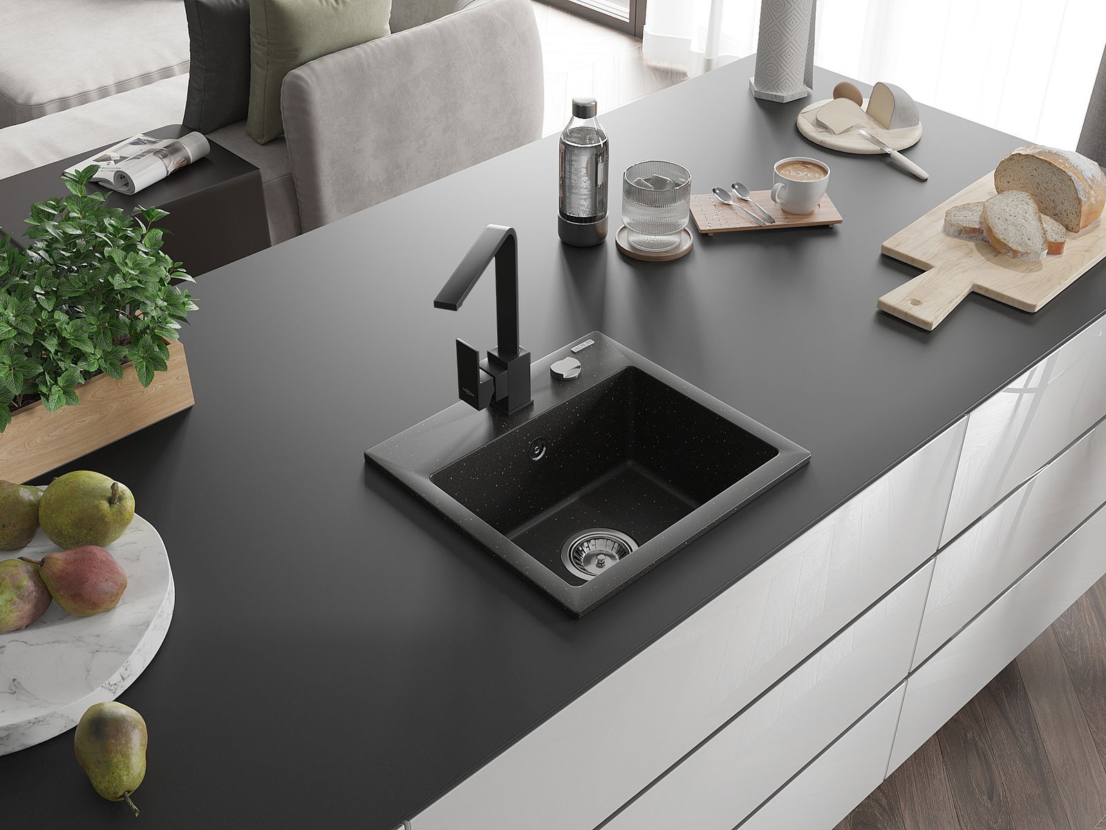 De gootsteen is gemaakt van hoogwaardig graniet. Het vormt een elegante en vooral praktische aanvulling op elke keuken, ongeacht de stijl. De hoge kwaliteit en duurzaamheid van graniet zorgen voor jarenlang gebruik.