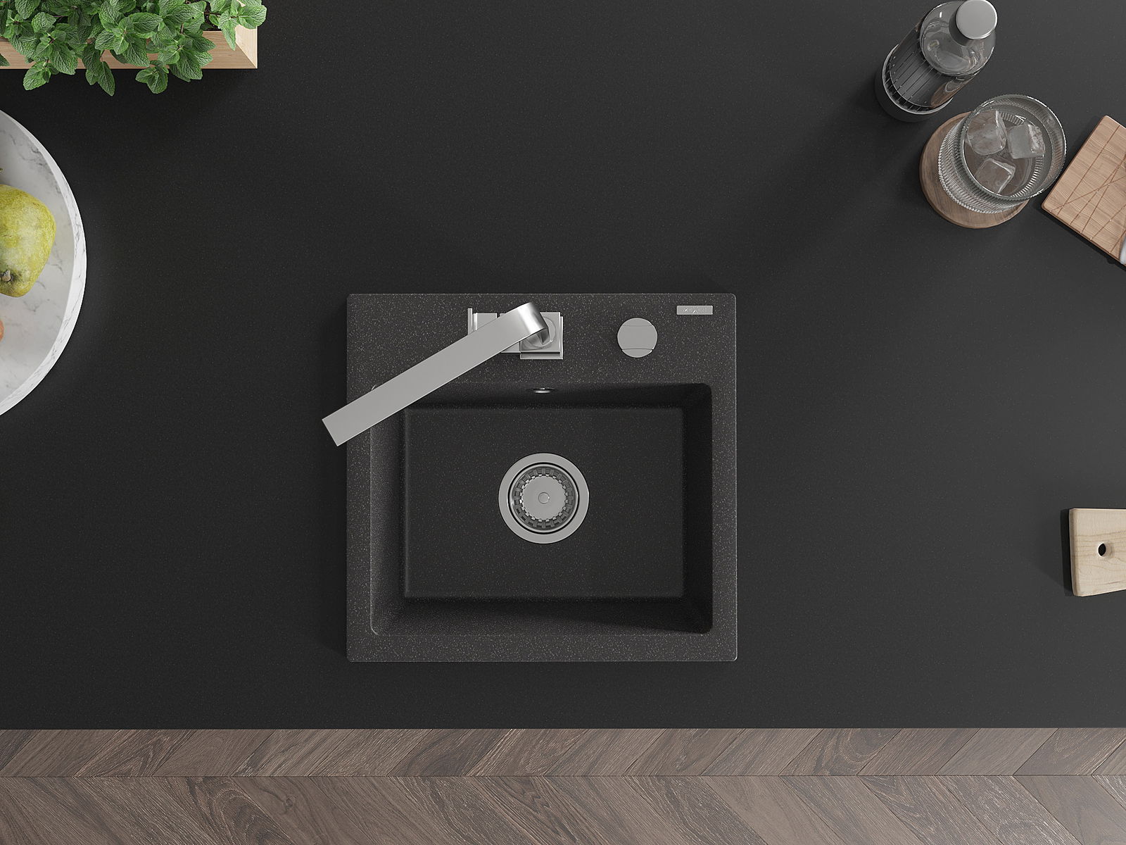 Mexen Milo granieten spoelbak met 1 bak met keukenmengkraan Rita, zwart gespikkeld - 6505-76-670300-00