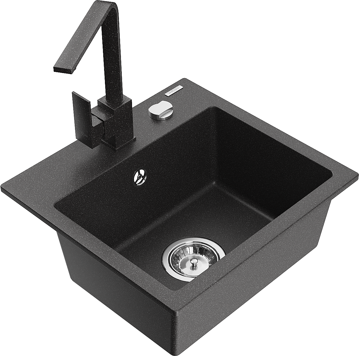 Mexen Milo granieten gootsteen met 1 bak en keukenmengkraan Rita, zwart gespikkeld - 6505-76-670300-76