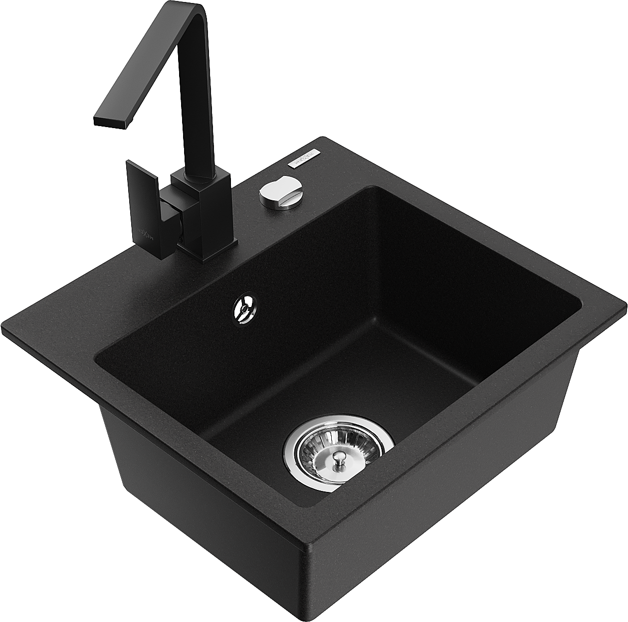 Mexen Milo granieten spoelbak 1-komor met keukenmengkraan Rita, zwart - 6505-77-670300-70