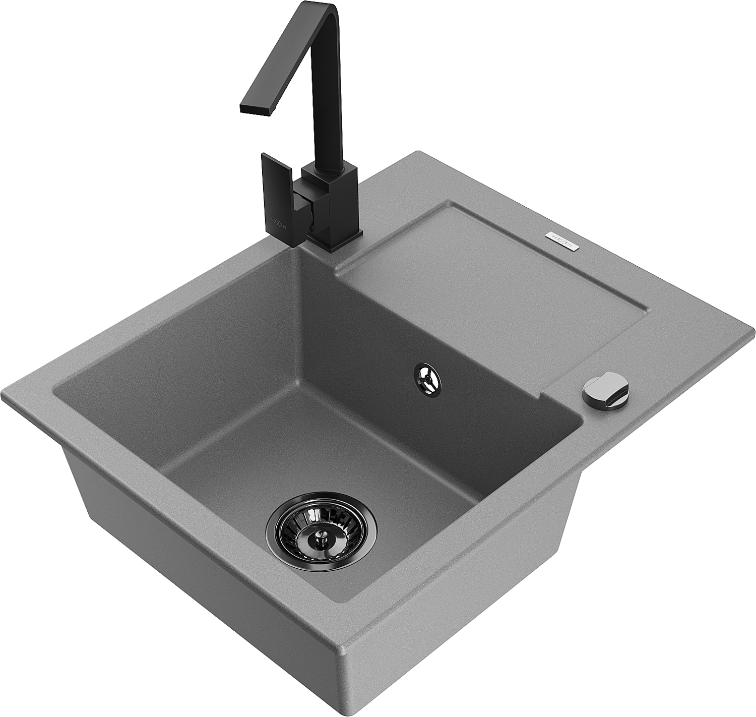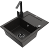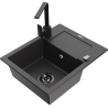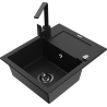 Mexen Enzo granieten spoelbak 1-komers met afdruiprek en keukenmengkraan Rita, grijs - 6506-71-670300-70-B