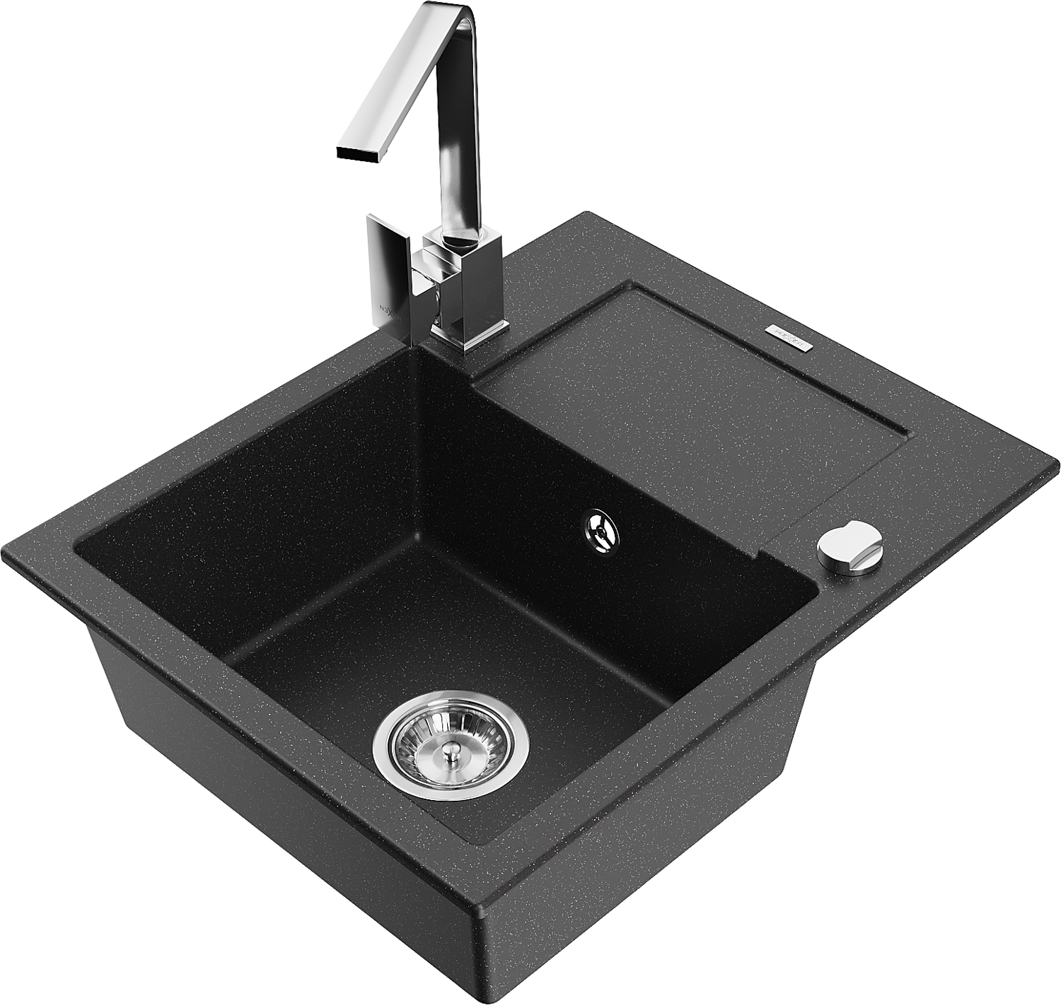 Mexen Enzo granieten spoelbak 1-komers met afdruipplaat en keuken mengkraan Rita, zwart/zilveren metallic - 6506-73-670300-00