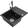 Mexen Enzo granieten keukenwasbak 1-komers met afdruipplaat en keukenmengkraan Rita, zwart - 6506-77-670300-00