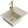 Het oppervlak van de gootsteen is bestand tegen vlekken en verkleuringen, waardoor het gemakkelijk schoon te houden is en zijn kleur behoudt gedurende een lange gebruiksperiode. Een esthetische en praktische aanvulling op elke keuken.