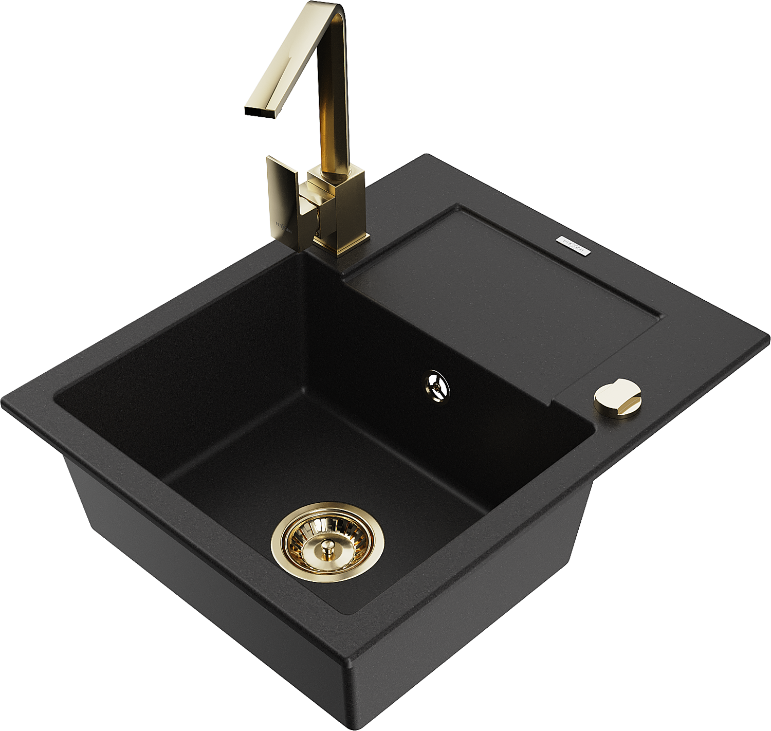 Mexen Enzo granieten spoelbak 1-kompartement met afdruiprek en keukenkraan Rita, zwart - 6506-77-670300-50