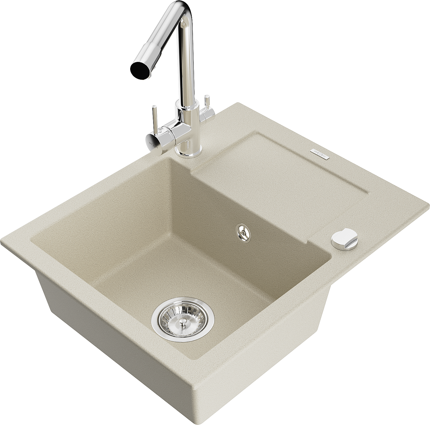 Mexen Enzo granieten spoelbak met 1 bak, afdruiprek en keukenkraan Duero, beige - 6506-69-671600-00