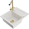 Mexen Enzo granieten gootsteen met 1 kom, afdruiprek en Duero keukenkraan, beige - 6506-69-671600-50