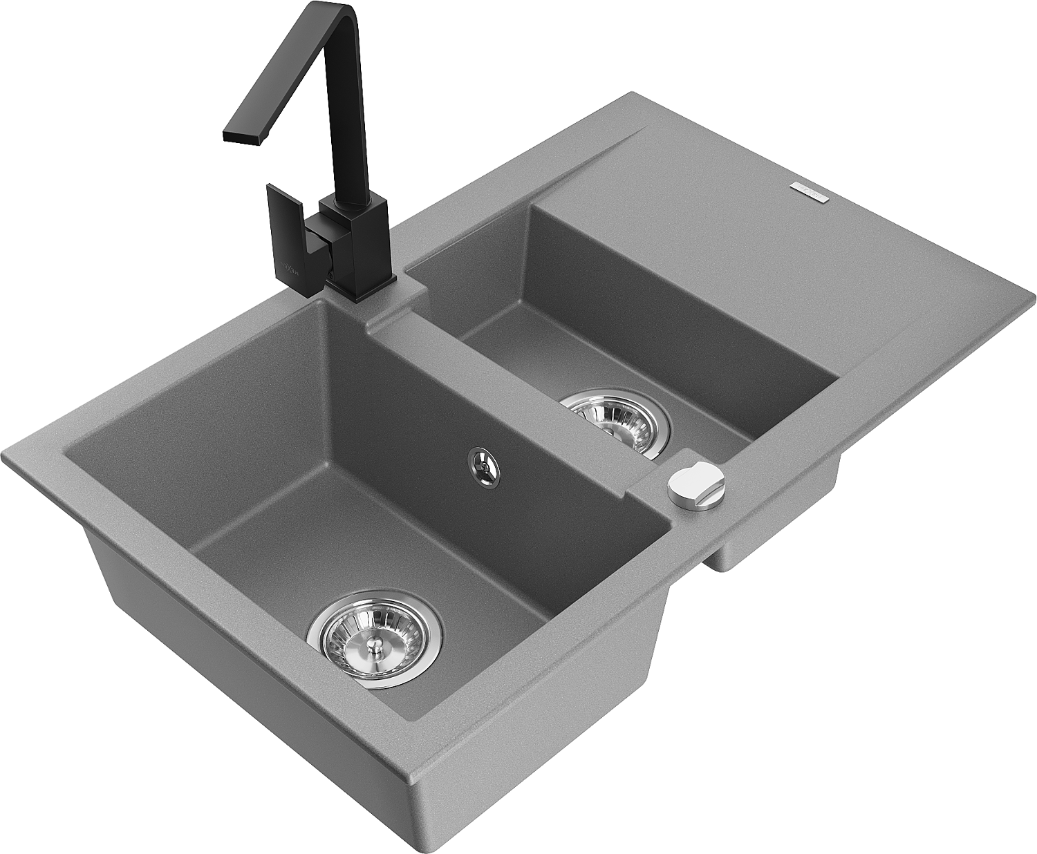 Mexen Gaspar granieten gootsteen 1,5-komorowy met afdruiprek en keukenkraan Rita, grijs - 6507-71-670300-70