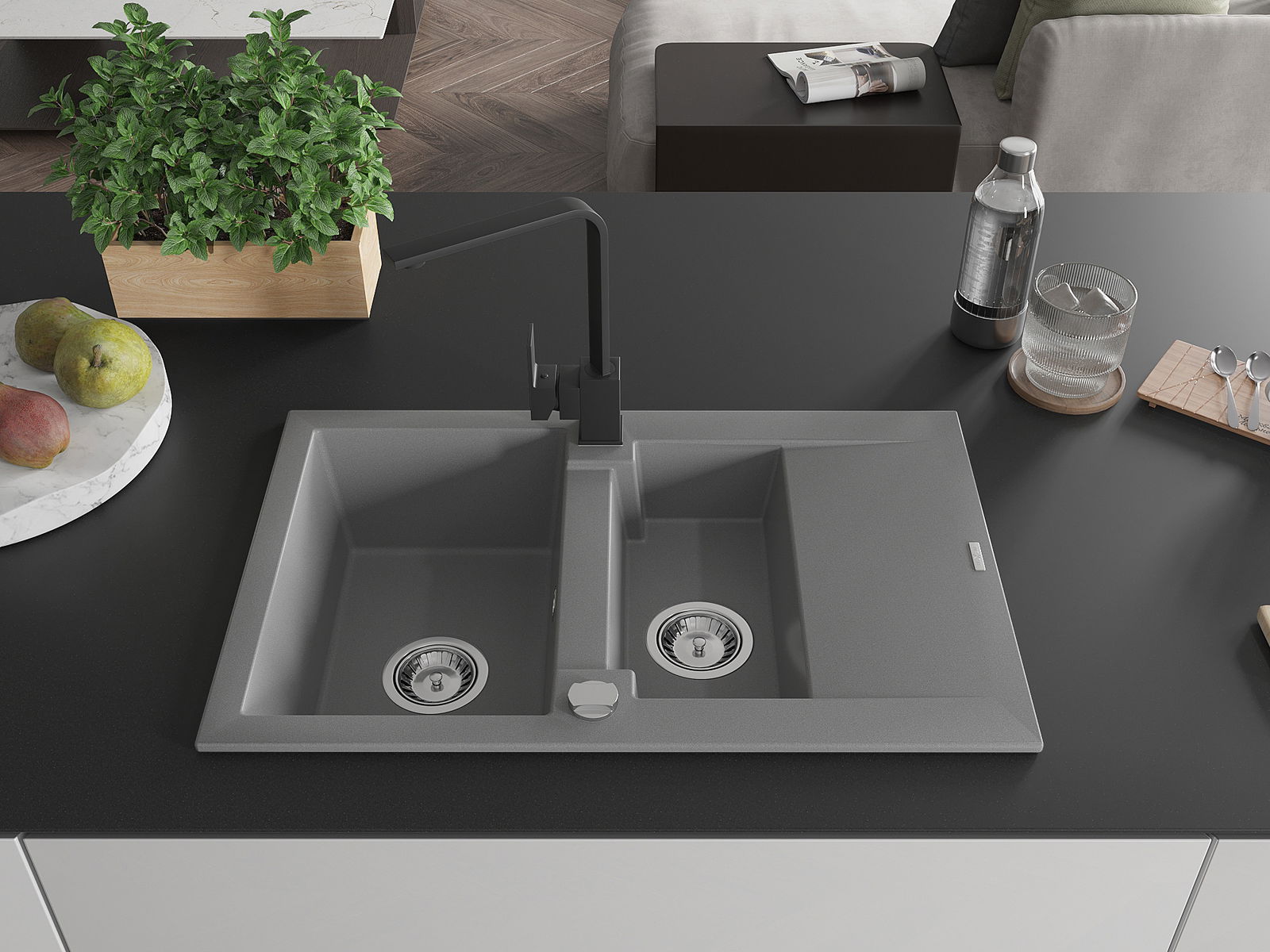 De gootsteen is gemaakt van hoogwaardig graniet. Het vormt een elegante en vooral praktische aanvulling op elke keuken, ongeacht de stijl. De hoge kwaliteit en duurzaamheid van graniet zorgen voor jarenlang gebruik.