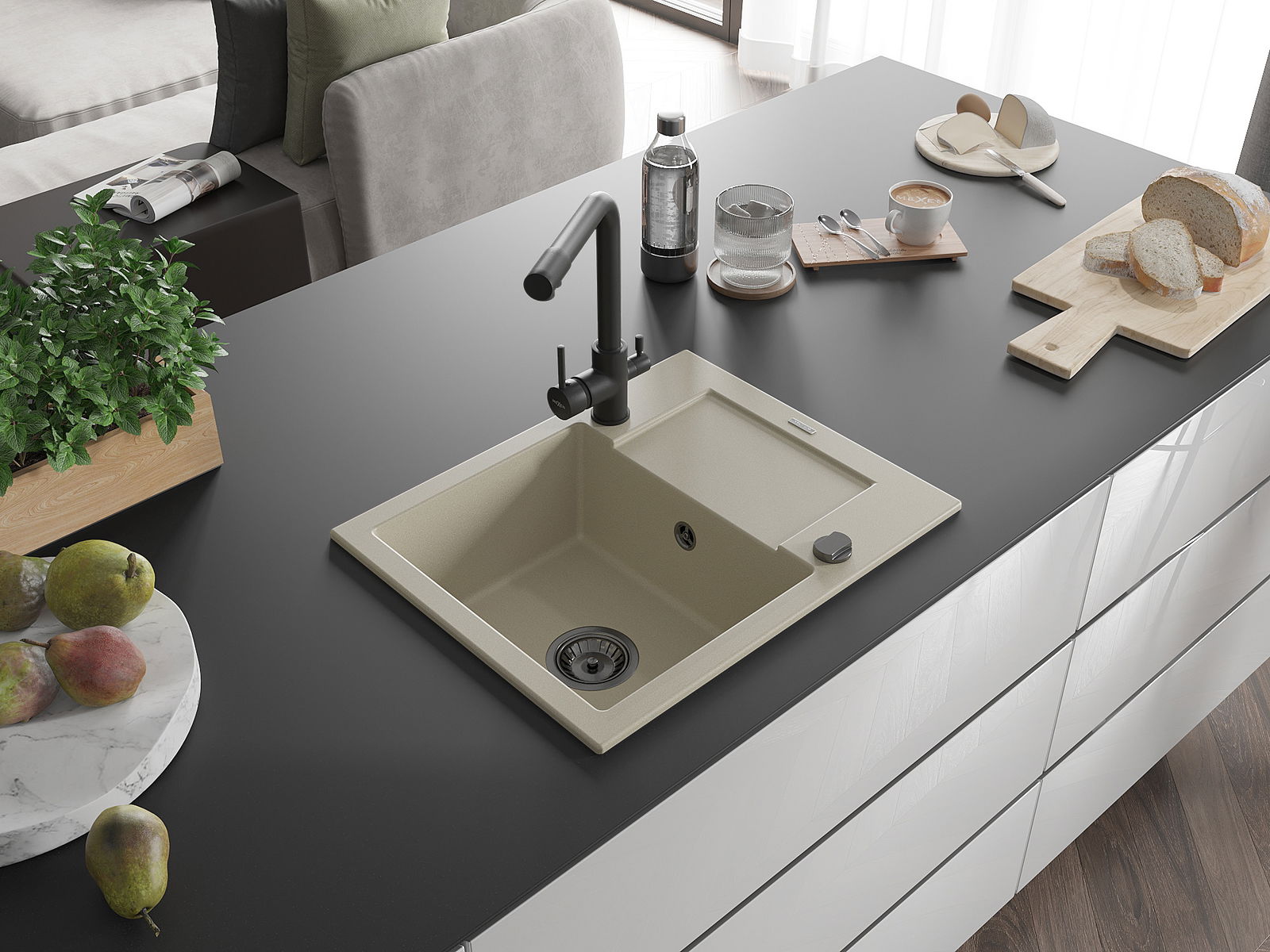 De gootsteen is gemaakt van hoogwaardig graniet. Het vormt een elegante en vooral praktische aanvulling op elke keuken, ongeacht de stijl. De hoge kwaliteit en duurzaamheid van graniet zorgen voor jarenlang gebruik.