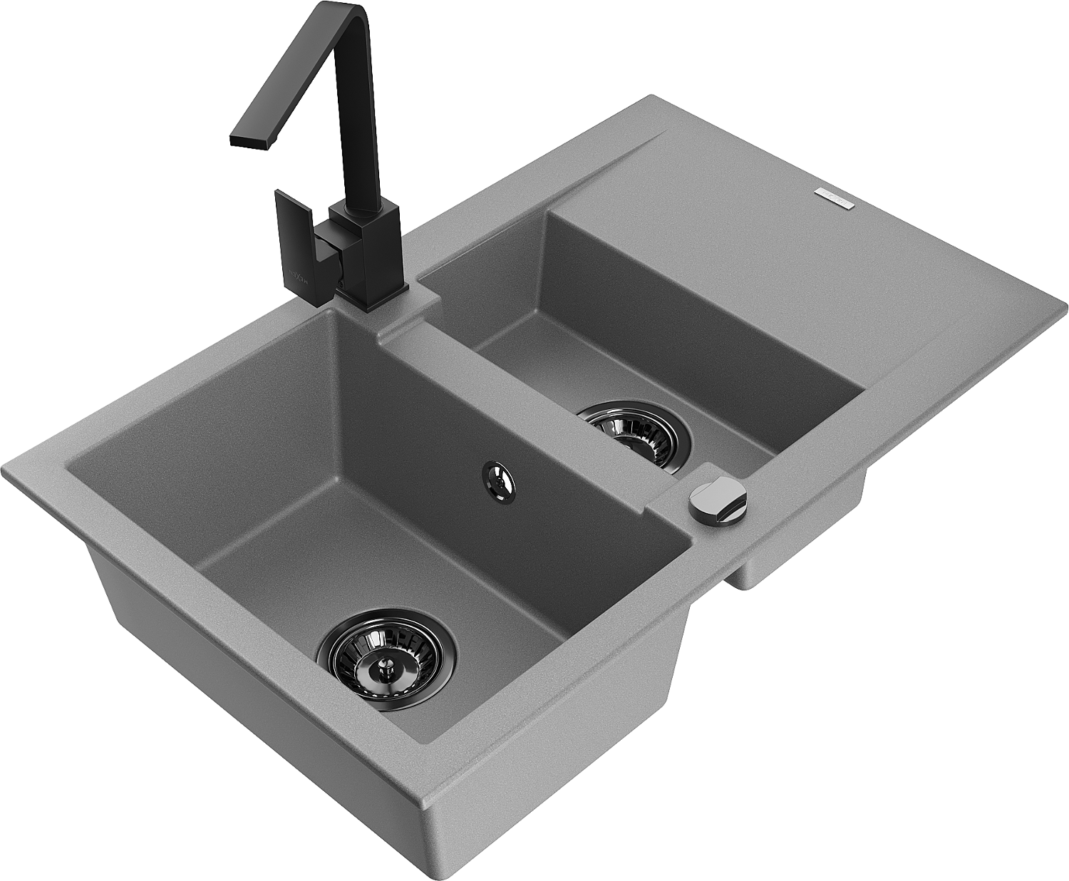 Mexen Gaspar granieten spoelbak 1,5-compartiment met druiprek en keukenkraan Rita, grijs - 6507-71-670300-70-B