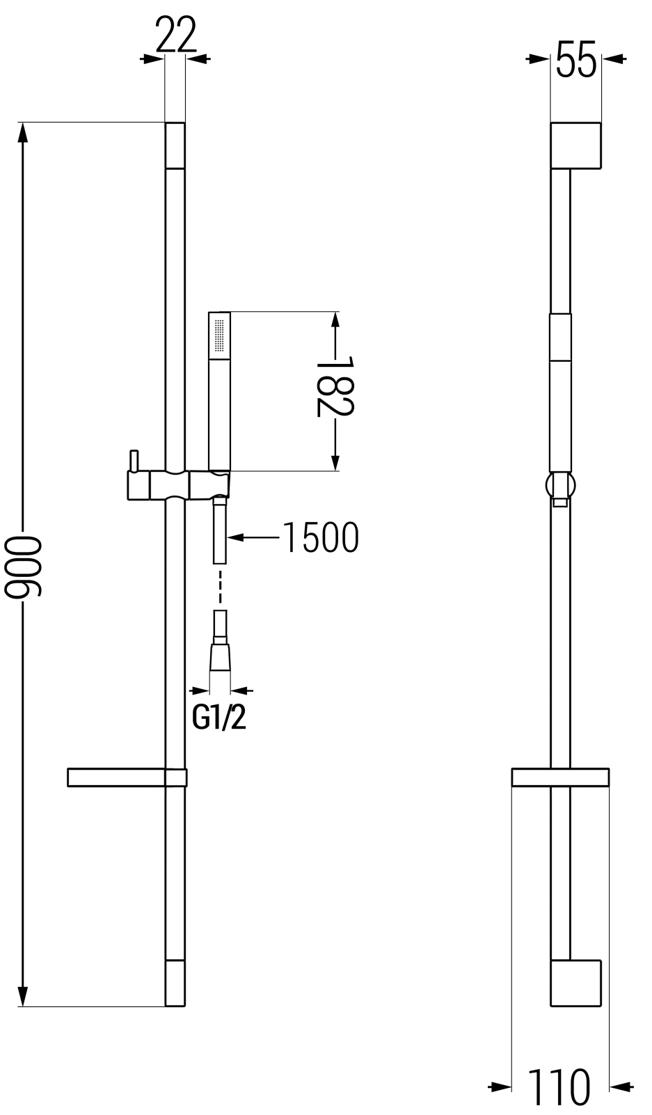 De aansluiting met 1/2" schroefdraad is een algemeen gebruikte standaardcomponent in interne waterinstallaties. Hierdoor is het aansluiten en monteren van de volgende douche-elementen veel eenvoudiger en intuïtiever.