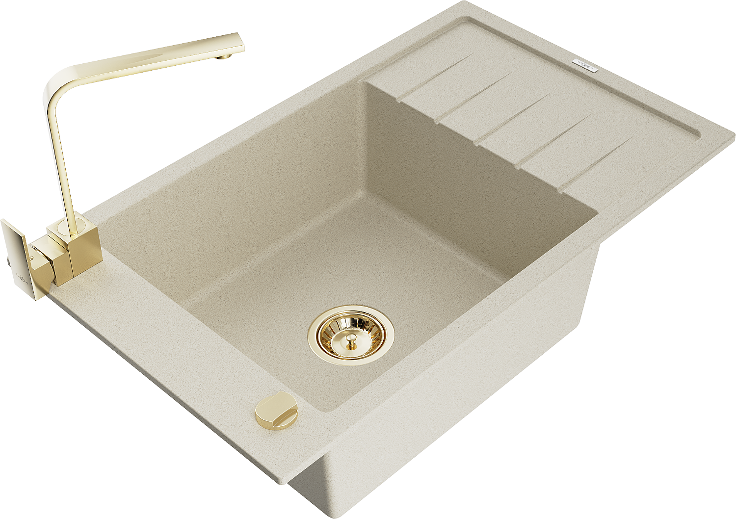 Mexen Elias granieten gootsteen met 1 bak en afdruipvlak en keukenkraan Rita, beige - 6511-69-670300-50