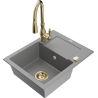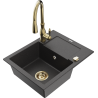 Mexen Enzo granieten gootsteen met 1 bak, afdruiprek en keukenkraan Savita, zwart/goud metallic - 6506-75-672601-50