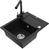 Mexen Enzo granieten gootsteen 1-komers met afdruiprek en Duero keukenkraan, zwart gespikkeld - 6506-76-671600-76