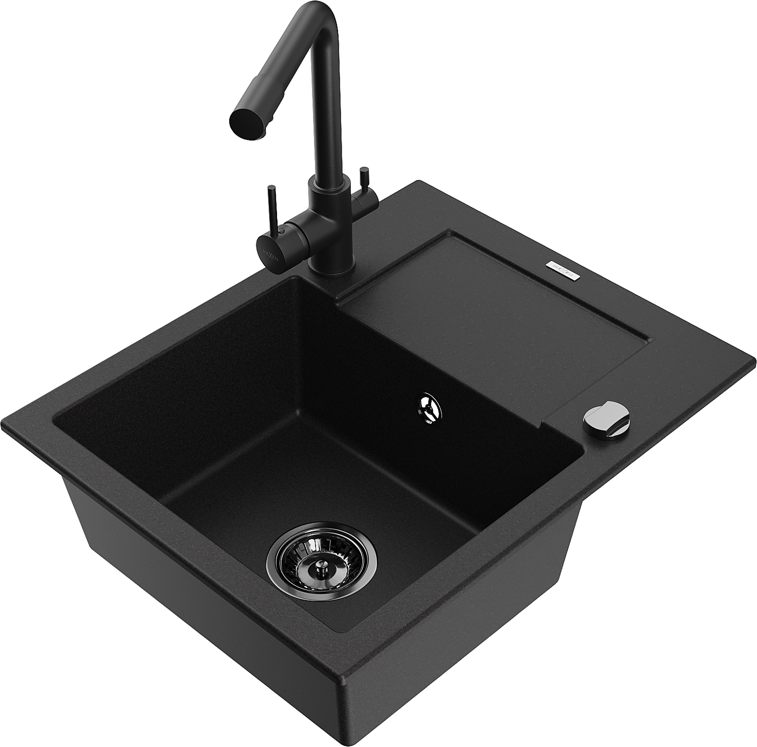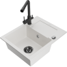 Mexen Enzo granieten spoelbak 1-komers met afdruiprek en keukenmengkraan Duero, zwart - 6506-77-671600-70-B