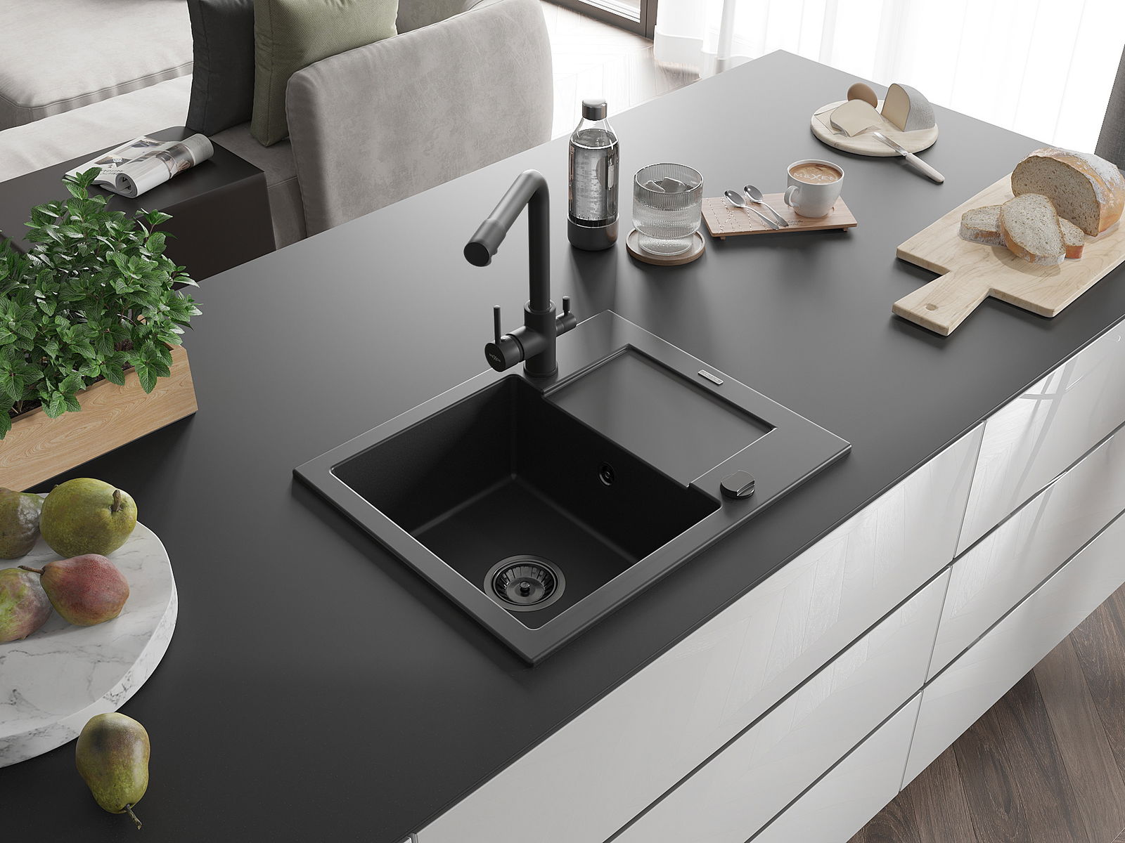 De gootsteen is gemaakt van hoogwaardig graniet. Het vormt een elegante en vooral praktische aanvulling op elke keuken, ongeacht de stijl. De hoge kwaliteit en duurzaamheid van graniet zorgen voor jarenlang gebruik.