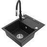 Mexen Enzo granieten gootsteen met 1 spoelbak en afdruiprek en keukenmengkraan Savita, zwart - 6506-77-672601-70