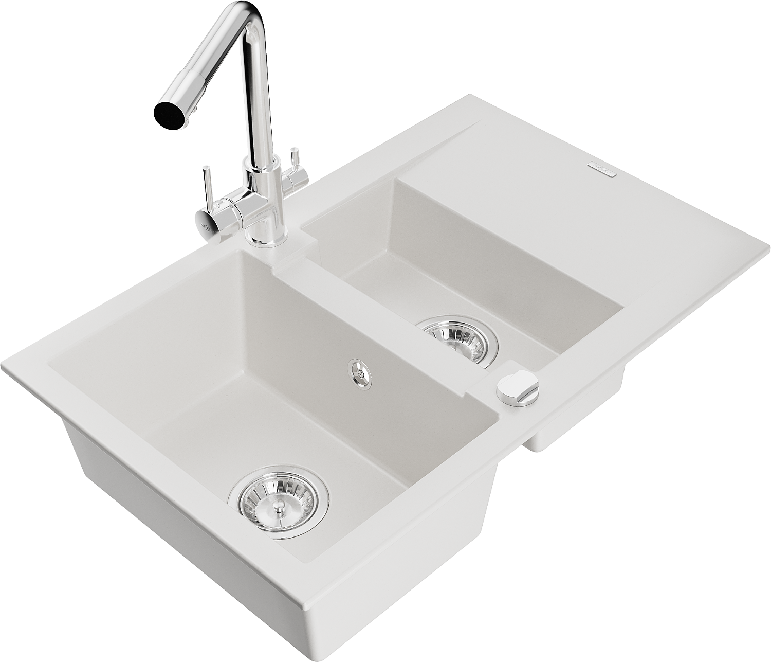 Mexen Gaspar granieten spoelbak 1,5-komorige met druiprek en Duero keukenkraan, wit - 6507-20-671600-00