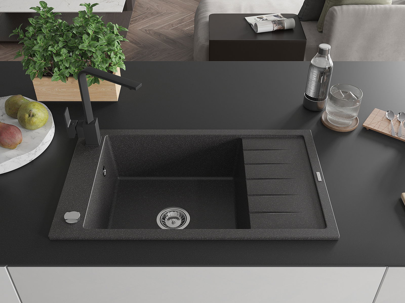 De gootsteen is gemaakt van hoogwaardig graniet. Het vormt een elegante en vooral praktische aanvulling op elke keuken, ongeacht de stijl. De hoge kwaliteit en duurzaamheid van graniet zorgen voor jarenlang gebruik.