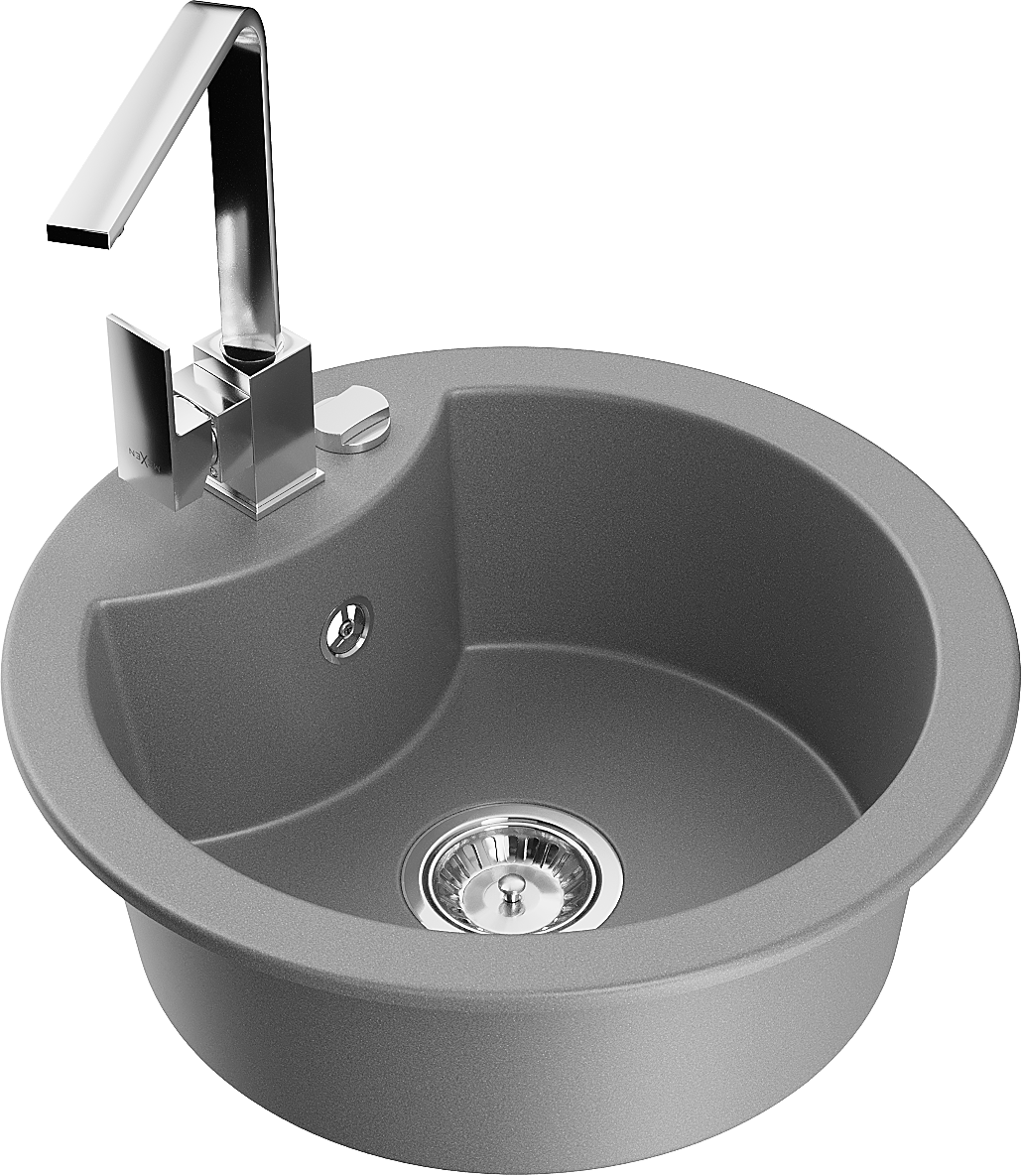 Mexen Diego granieten spoelbak 1-kompartiment met keuken kraan Rita, grijs - 6512-71-670300-00