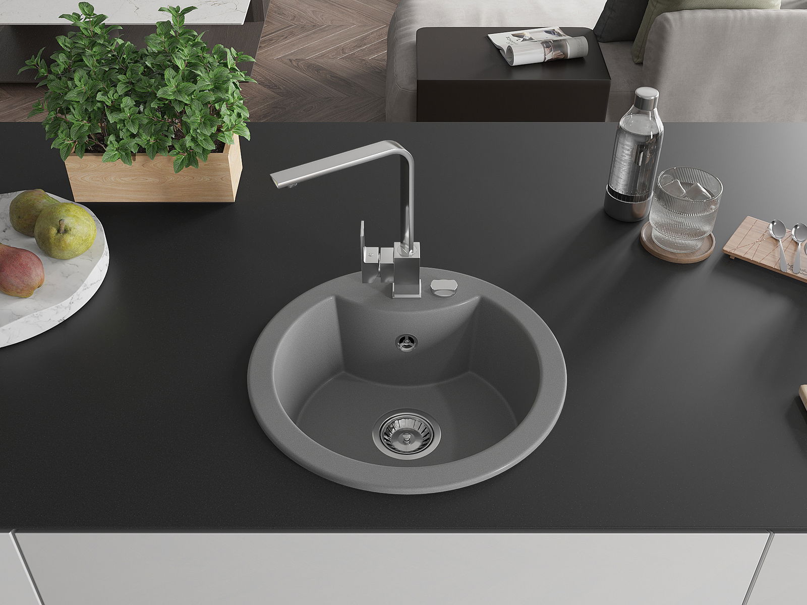 De gootsteen is gemaakt van hoogwaardig graniet. Het vormt een elegante en vooral praktische aanvulling op elke keuken, ongeacht de stijl. De hoge kwaliteit en duurzaamheid van graniet zorgen voor jarenlang gebruik.