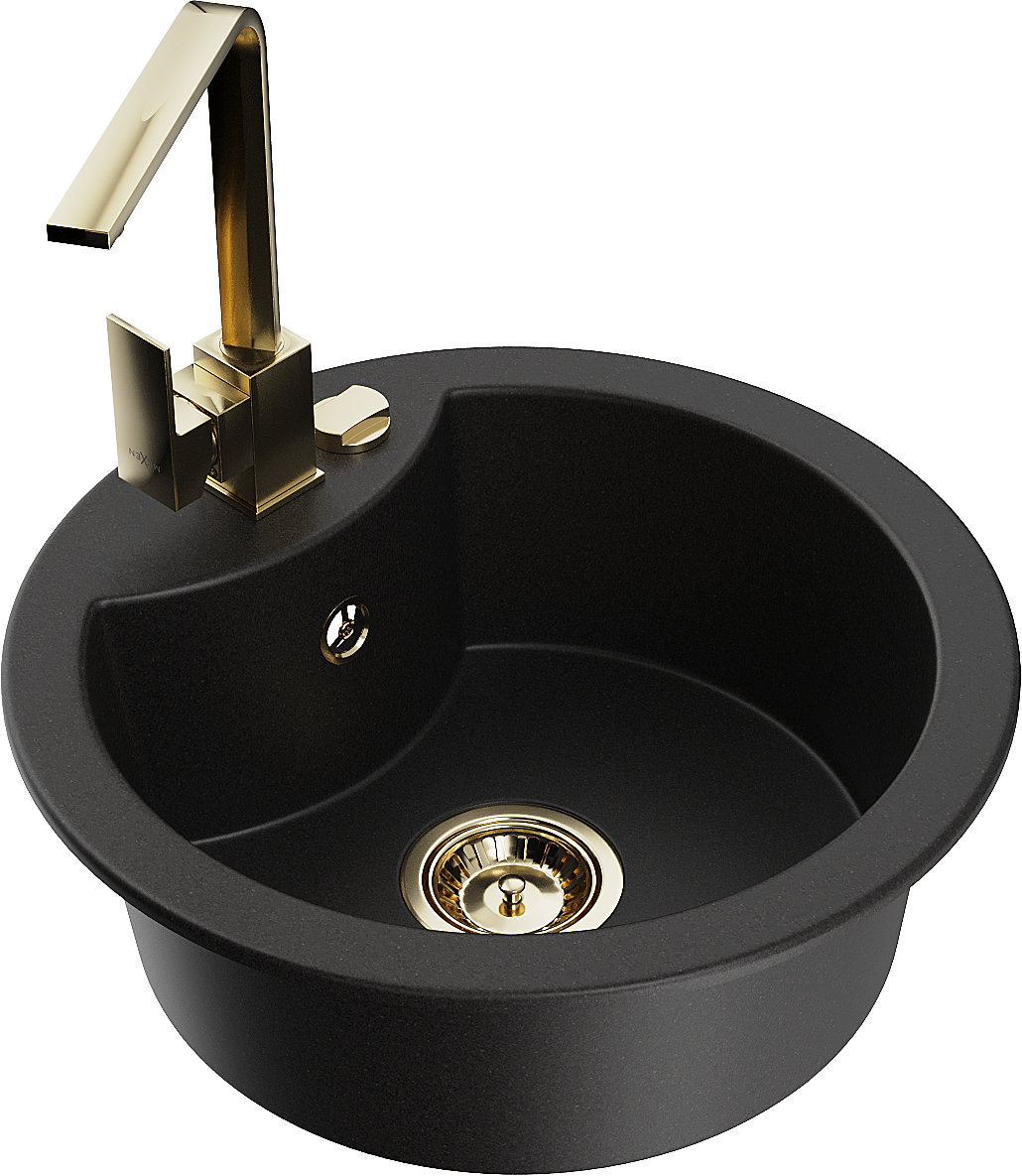 Mexen Diego granieten gootsteen 1-komor met keukenkraan Rita, zwart - 6512-77-670300-50