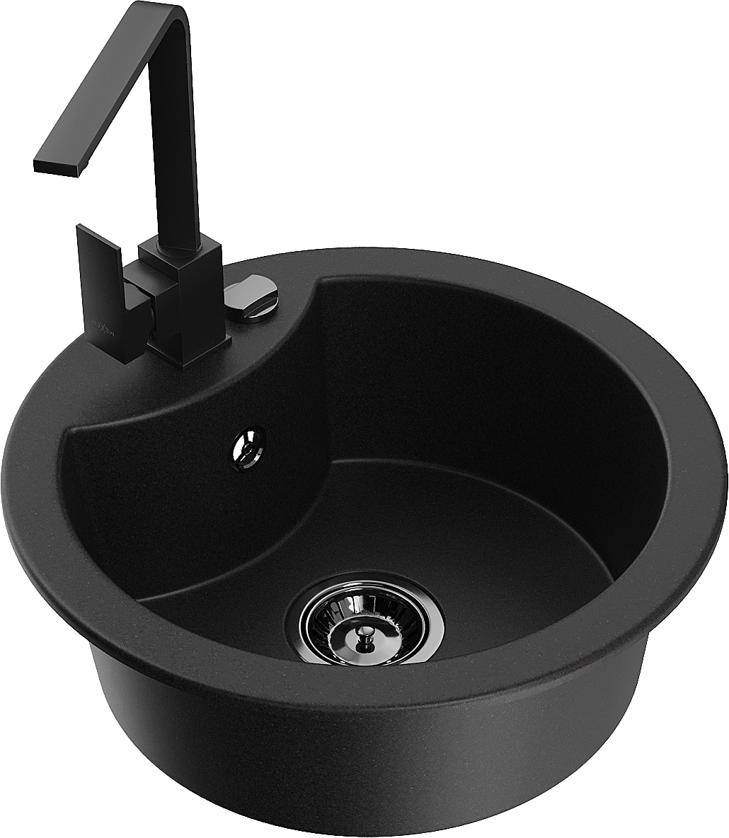 Mexen Diego granieten spoelbak 1-kamer met keukenkraan Rita, zwart - 6512-77-670300-70-B