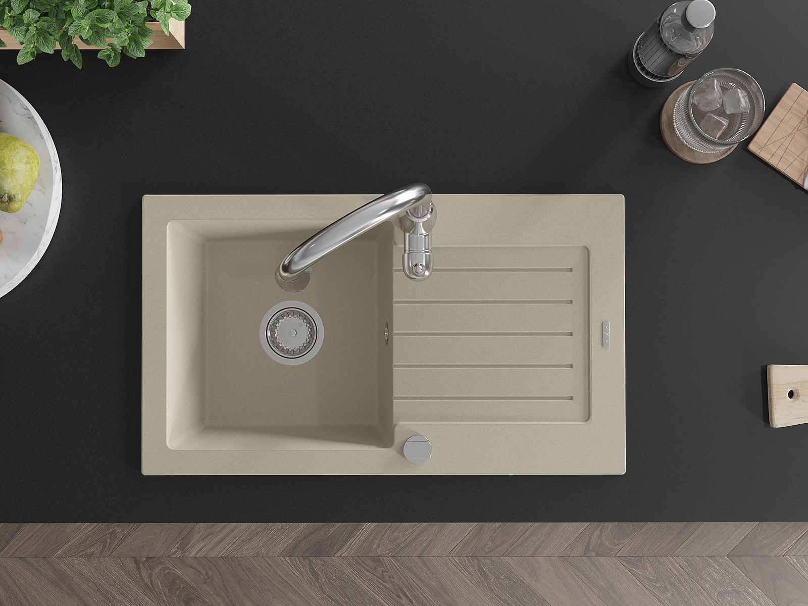 De gootsteen is gemaakt van hoogwaardig graniet. Het vormt een elegante en vooral praktische aanvulling op elke keuken, ongeacht de stijl. De hoge kwaliteit en duurzaamheid van graniet zorgen voor jarenlang gebruik.