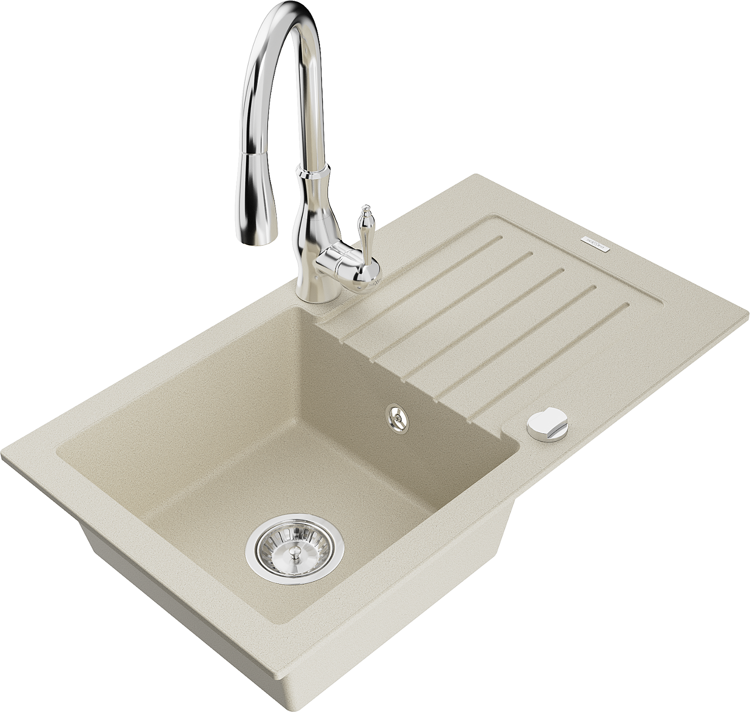 Mexen Pablo granieten spoelbak 1-komor met afdruiprek en Savita keukenmengkraan, beige - 6510-69-672601-00