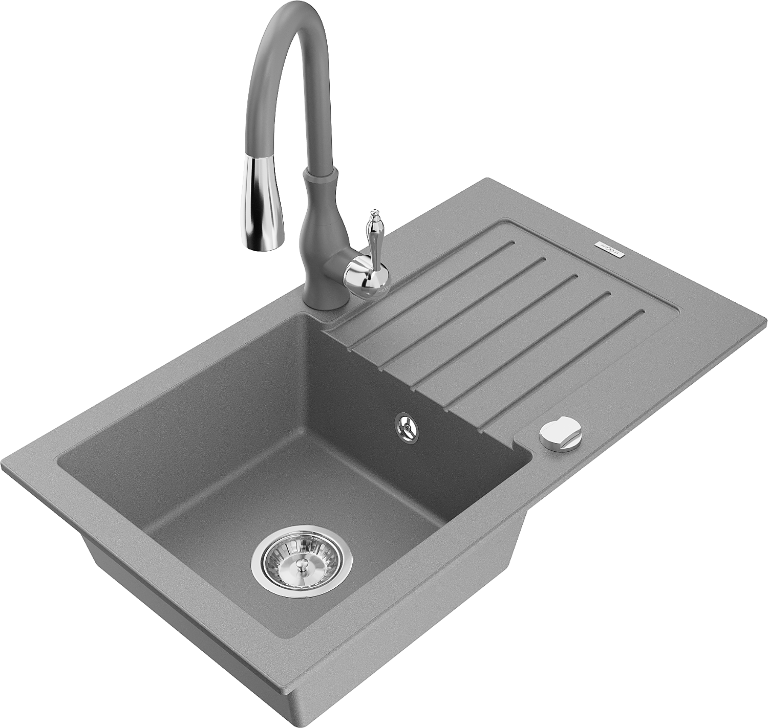 Mexen Pablo granieten gootsteen 1-bak met afdruiprek en Savita keukenkraan, grijs - 6510-71-672601-71