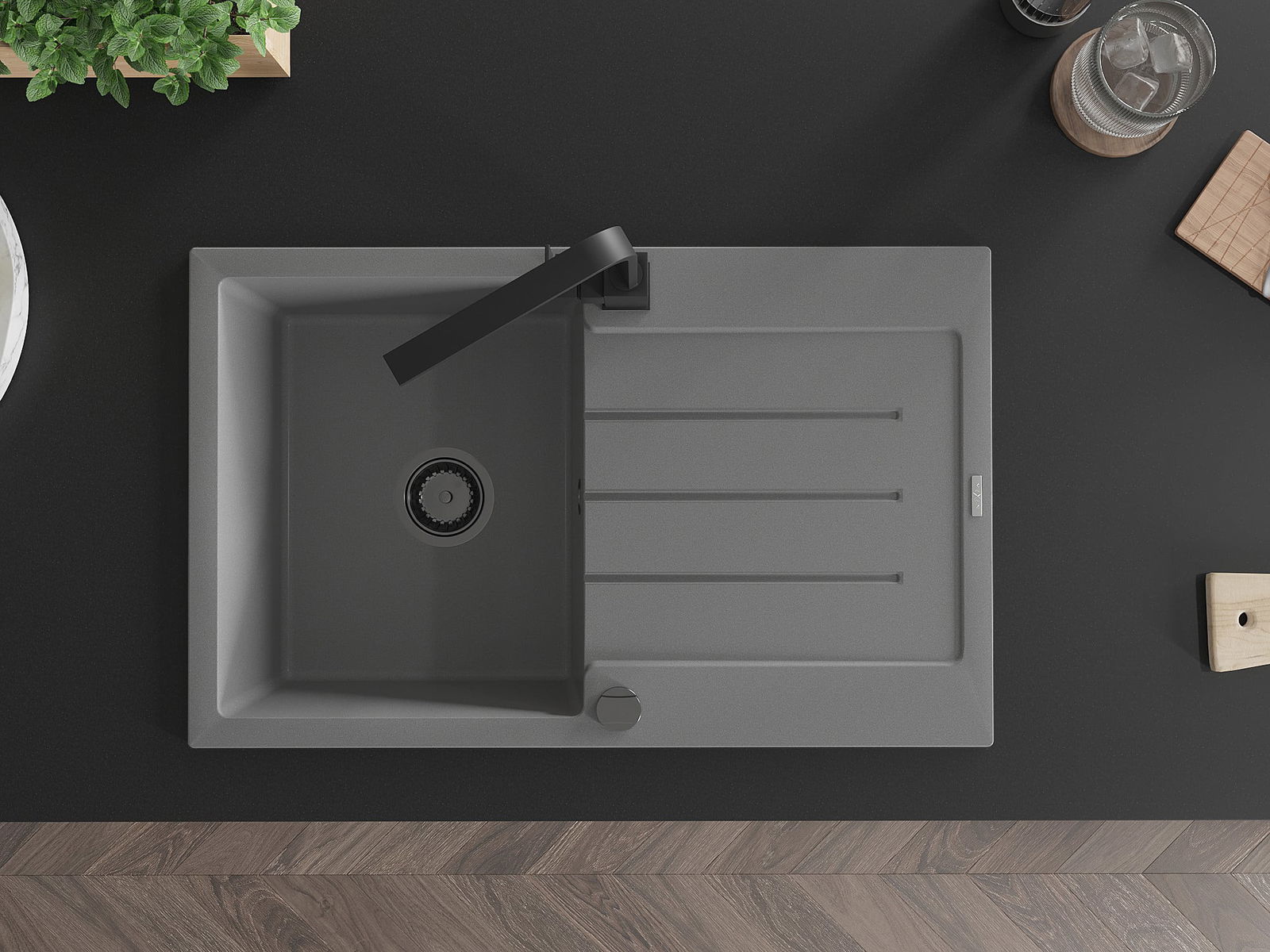 Mexen Bruno granieten spoelbak 1-compartement met afdruiprek en keukenmengkraan Rita, grijs - 6513-71-670300-70-B