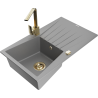 Mexen Cesar granieten gootsteen 1-kompartment met afdruiprek en keukenmengkraan Rita, beige - 6514-69-670300-50