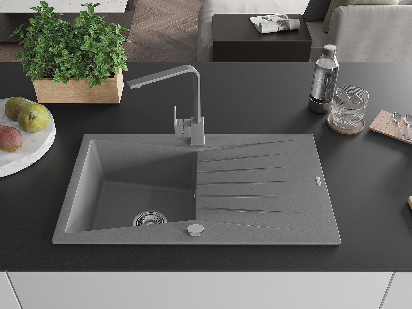 De gootsteen is gemaakt van hoogwaardig graniet. Het vormt een elegante en vooral praktische aanvulling op elke keuken, ongeacht de stijl. De hoge kwaliteit en duurzaamheid van graniet zorgen voor jarenlang gebruik.