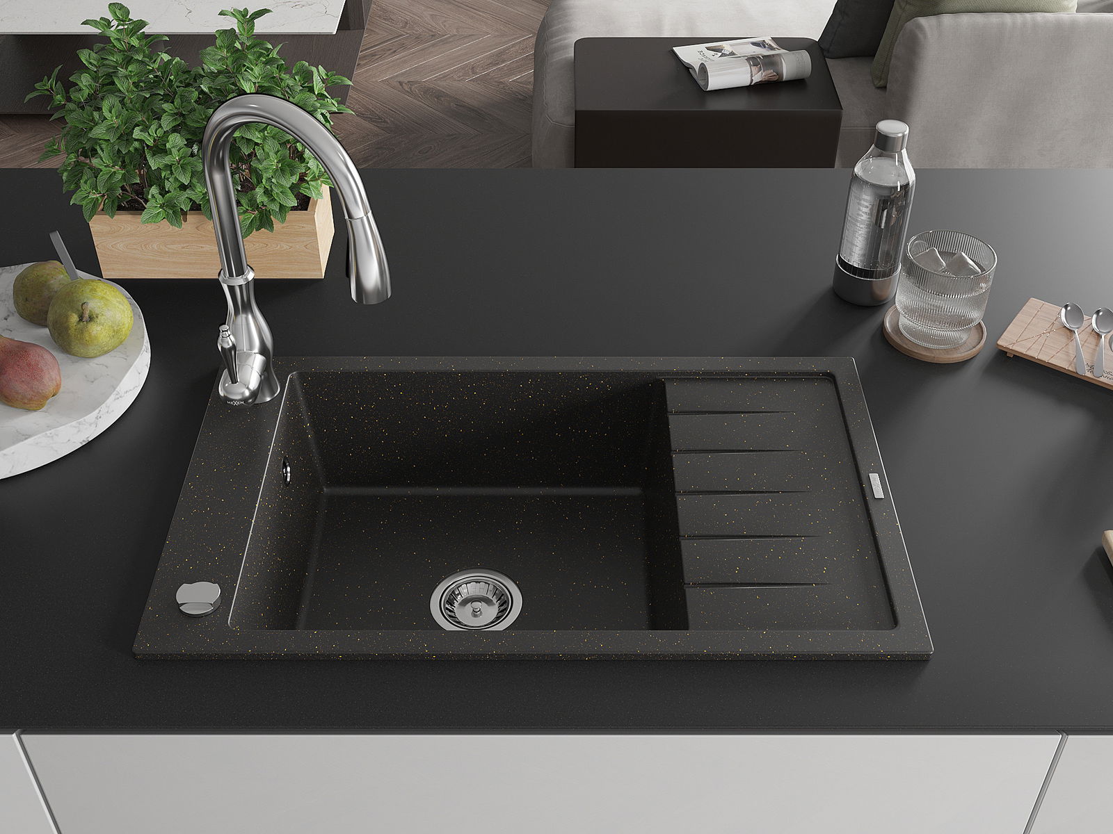 De gootsteen is gemaakt van hoogwaardig graniet. Het vormt een elegante en vooral praktische aanvulling op elke keuken, ongeacht de stijl. De hoge kwaliteit en duurzaamheid van graniet zorgen voor jarenlang gebruik.