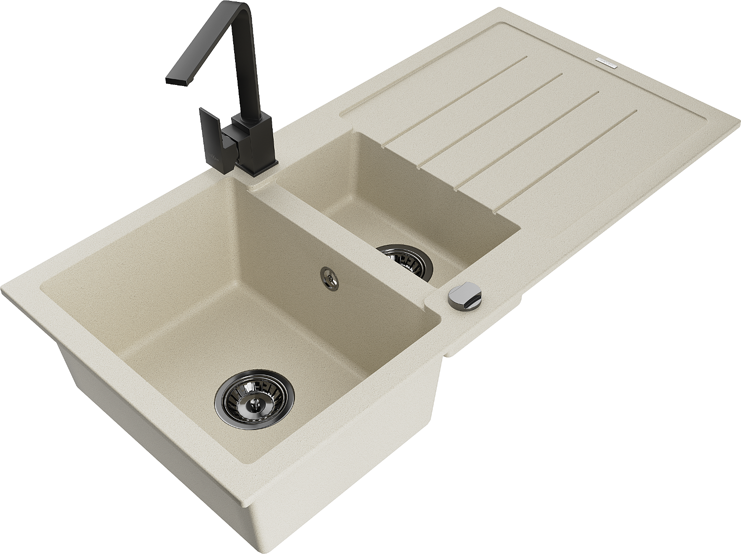 Mexen Andres granieten gootsteen 1,5-komorige met afdruiprek en keukenkraan Rita, beige - 6515-69-670300-70