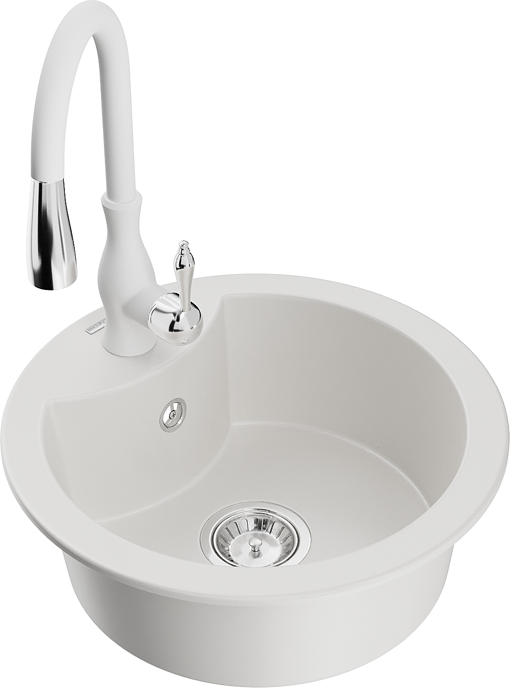 Mexen Diego granieten spoelbak met 1 bak met Savita keukenmengkraan, wit - 6512-20-672601-20