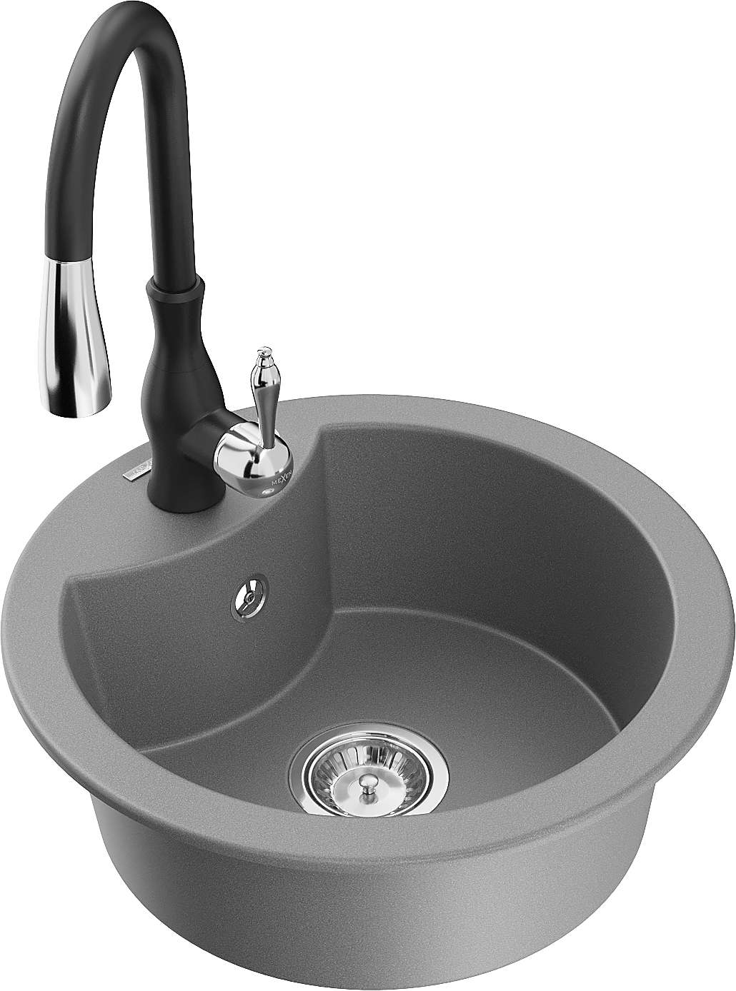 Mexen Diego granieten gootsteen 1-kompartment met Savita keukenmengkraan, grijs - 6512-71-672601-70